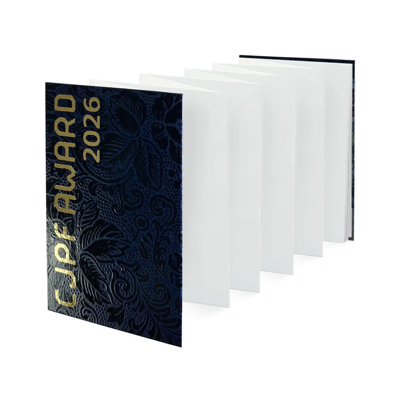 表紙には、職人がカシュー塗料を塗り重ねて仕上げる伝統工芸品「うるし紙」を使用。他にはない手仕事ならではの深い味わいと光沢がある表面に、アワードのロゴを金箔押しで施しました。